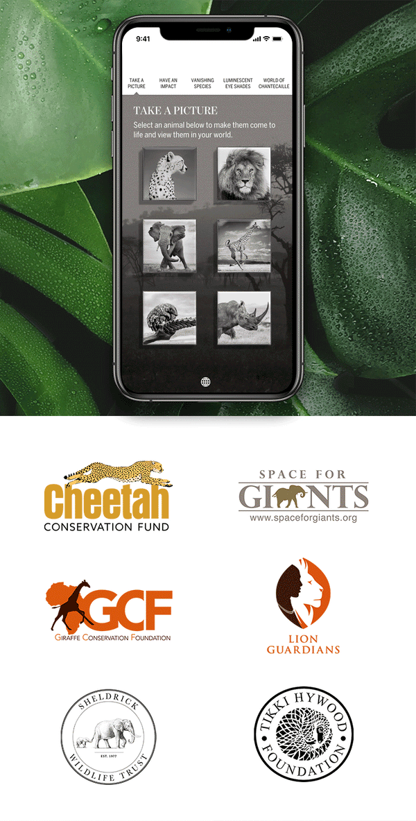 With our new Chantecaille Wild Beauty app, bring six of Africa’s Vanishing Species into your world and photograph or video them in action. Then post them to raise additional funds to save endangered animals.