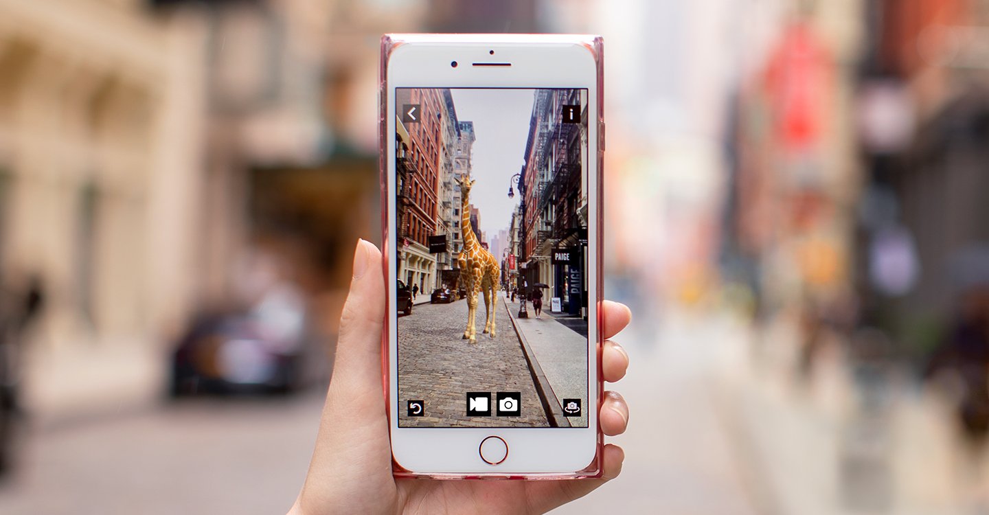 Select one of six animals from the Take a Picture menu, scan the floor to place it in your environment, tap it to open, then watch the animal emerge from a Chantecaille compact. You can move the animal by tapping the floor, resize it to fill a room or sit on the palm of your hand, or flip to selfie mode. Set against a soundtrack of the African savannah, the animals can idle, walk, and move their heads and bodies—listen for the lion’s growl and the trumpet of the elephant.